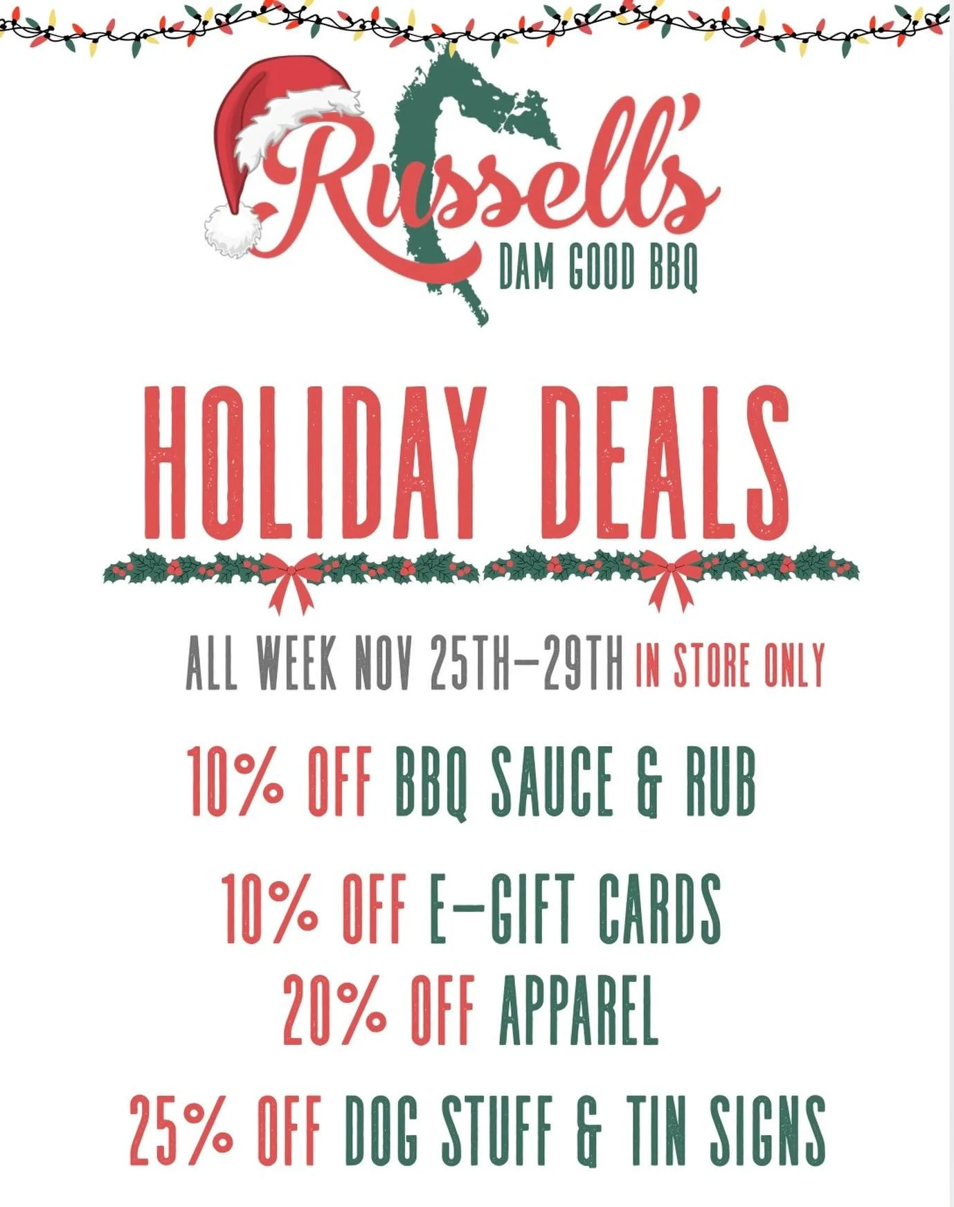 Know someone who loves BBQ as much as you do? Hook ’em up with a Russell’s Gift Card and let them choose their favorite sauce, rub, or meal.