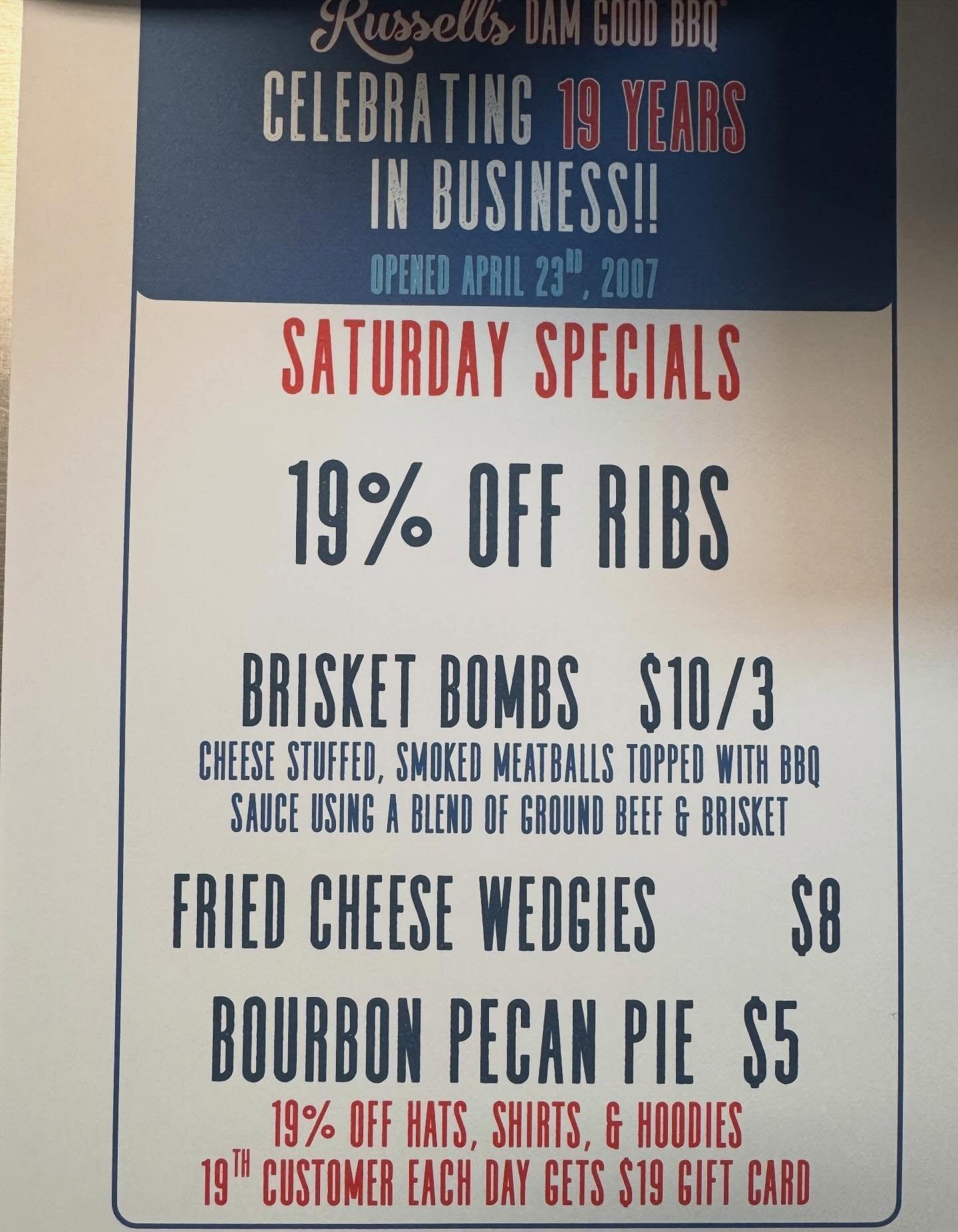 Whether you’re dining in, grabbing takeout, or catering your next event, Russell’s BBQ is always serving up that same handcrafted goodness.