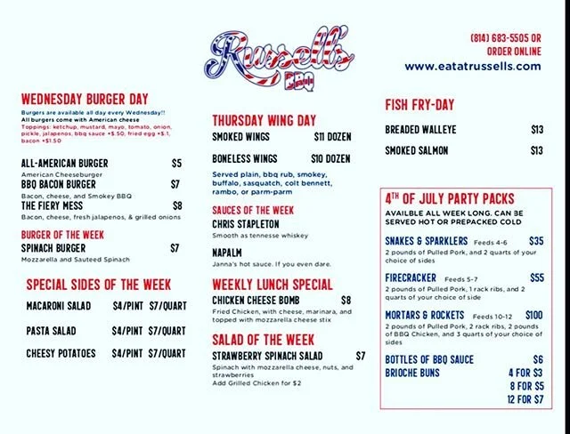Whether you’re dining in, grabbing takeout, or catering your next event, Russell’s BBQ is always serving up that same handcrafted goodness.